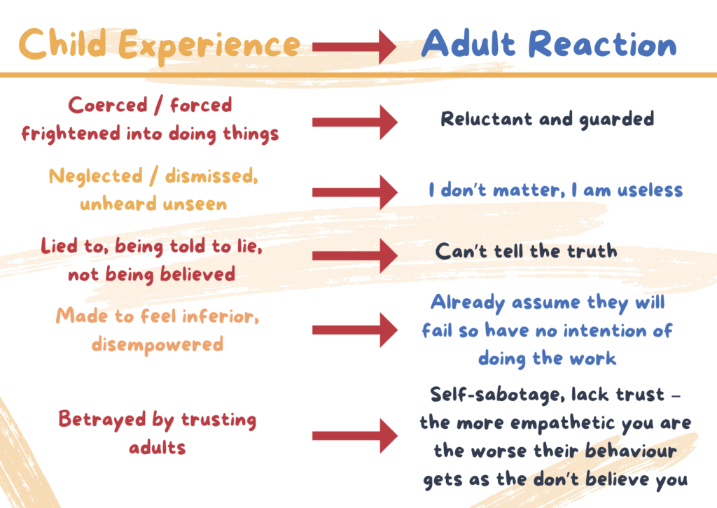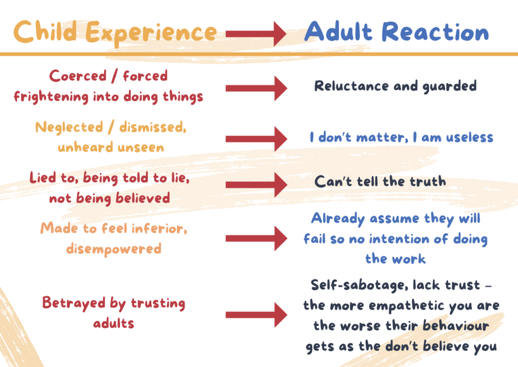 Families may present behaviours that feel challenging, but these often act as protective strategies shaped by trauma or fear.