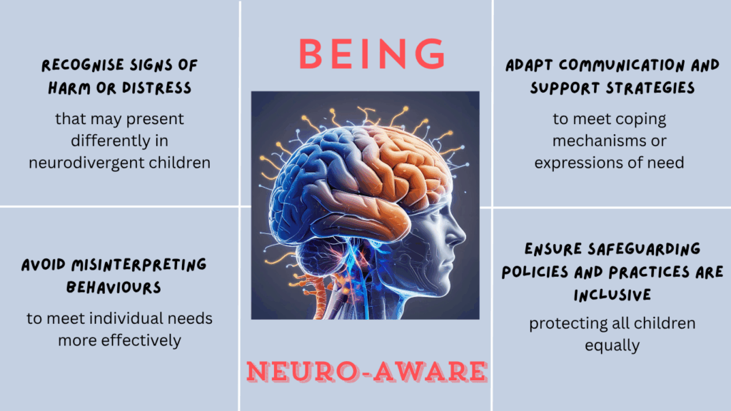 By embedding neurodiversity into safeguarding practice, professionals can better protect children’s wellbeing, promote trust, and create safer environments where every child feels understood and supported.